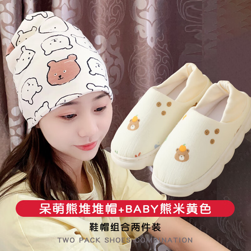 包邮 尚舒伴(SHANGSHUBAN)月子鞋产后夏季薄款8月份9包跟软底防滑孕妇鞋子春秋天产妇拖鞋女 【鞋帽组合】呆萌熊堆堆帽+BABY熊米黄色 40 -41【鞋码偏小半码】